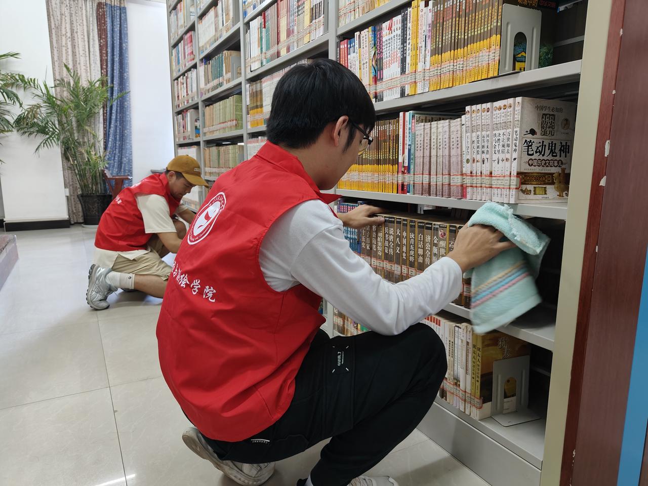 图为志愿者整理书籍