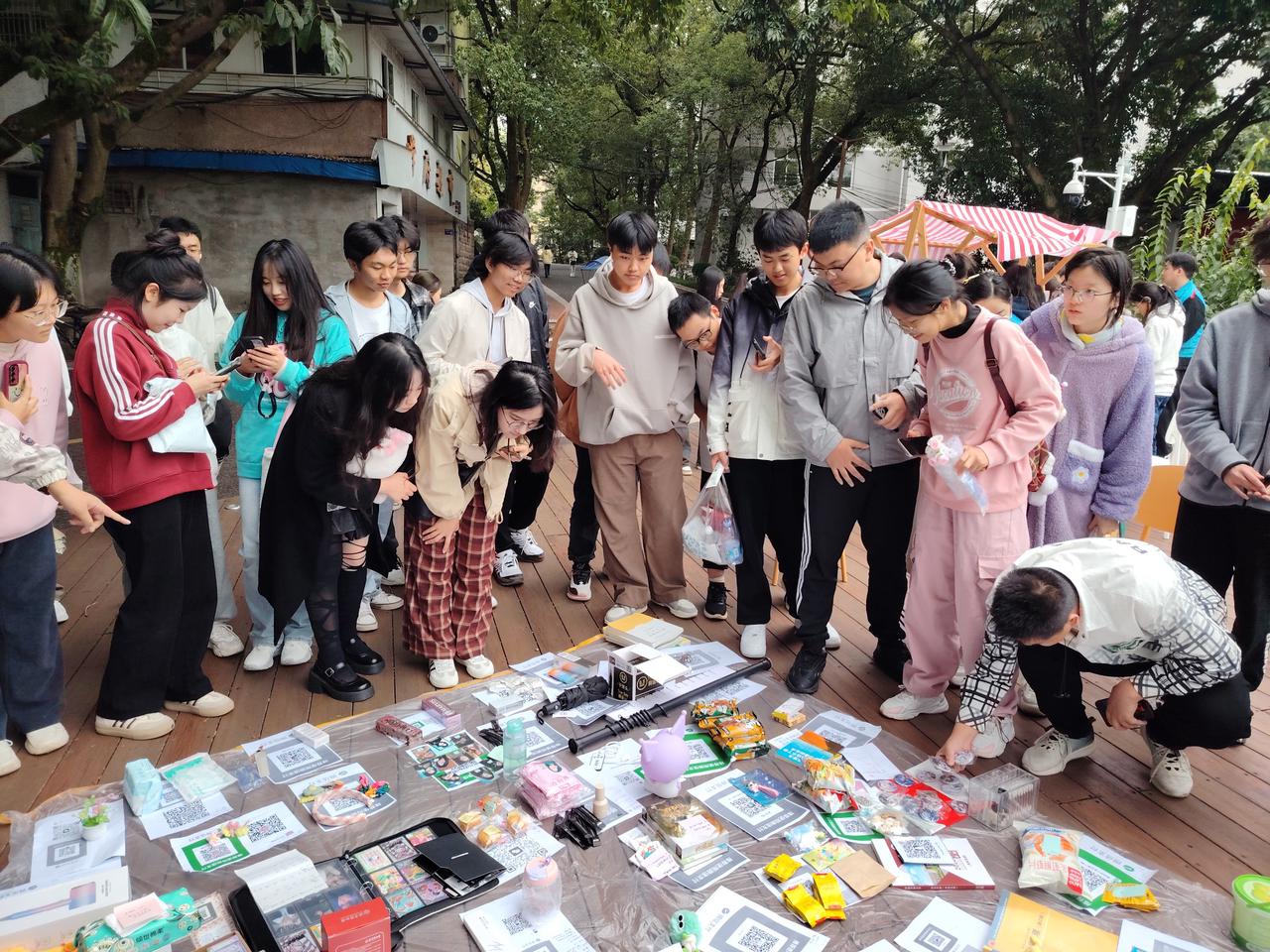 本次活动分为卖与买两个环节。其中买卖的旧物包含了书籍、日常生活用品、手工品等,品类繁多,物美价廉,吸引了许多同学参与。买卖流程为卖家先将旧物、联系方式以及付款二维码交予工作人员,工作人员再依次摆放于观景台上。买家选中心仪的物品后,可通过线上或线下方式与卖家交流了解物品详情,待买卖双方达成一致后即可付款完成交易。活动中,卖家严守交易准则,不欺瞒、不坐地起价,致力于为买家带来最好的购物体验。工作人员也恪尽职守,帮助同学们拿放物品以及维持现场秩序,保障活动有序进行。