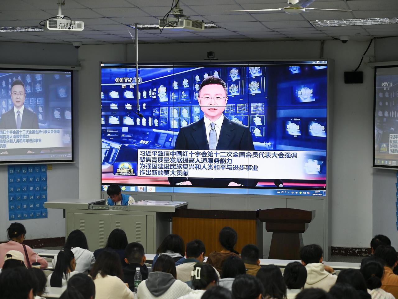 近日,校区青年志愿者协会与校区社团联习研会举办“习近平总书记致信中国红十字会第十二次全国全员代表大会精神”学习会。 活动现场,同学们跟随工作人员的引导,先后通过观看视频、PPT展示、互动讨论和老师发言等形式深入了解了红十字运动的历史背景以及基本原则。在知识竞答、现场答疑等环节中,同学们不仅加深了自己对红十字精神的理解,还认识到红十字事业在促进社会和谐、保障人民健康中的重要作用。