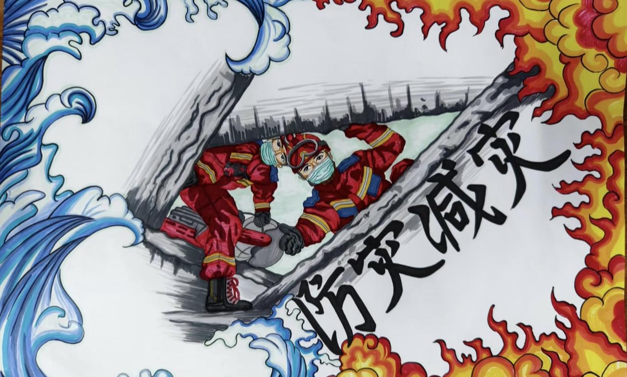 图为同学们手绘消防作品