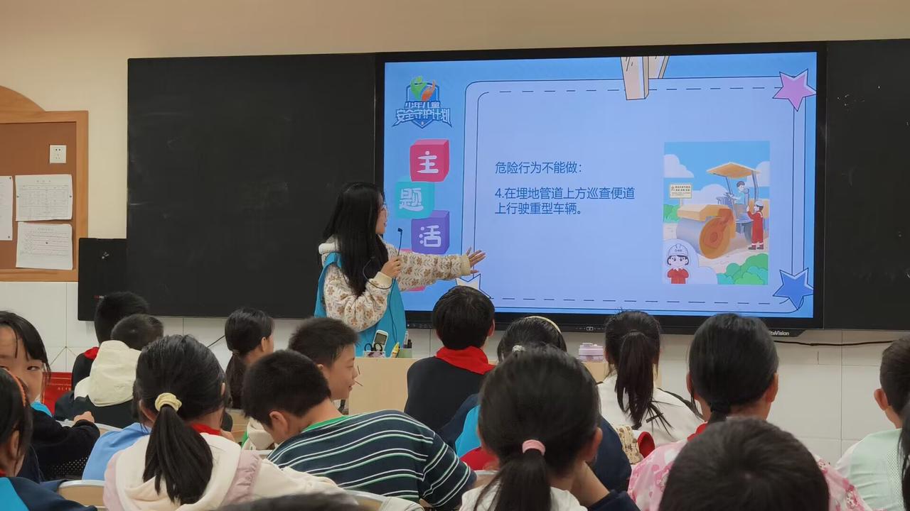 此次活动中,志愿者从思想引领、管道保护、意外伤害和预防侵害等板块展开生动讲解。在宣讲过程中,志愿者以PPT和视频形式向同学们普及相关知识,介绍管道的重要作用、潜在风险以及正确的保护方式,还通过现场展示模型、制作手工和“你问我答”等方式引导同学们积极思考、互动交流。通过丰富有趣的活动,同学们纷纷表示要将管道保护知识牢记于心,争做管道安全保护“优秀小卫士”。