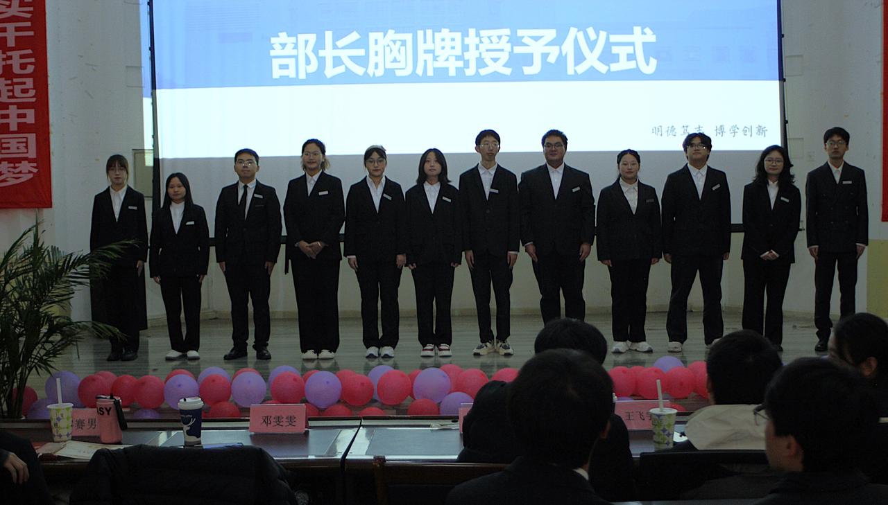 会中,前校区团委学生副书记王飞宇为第十五届主席团颁发聘书;第十五届主席团为全体部长、会长颁发聘书,并为表现出色的会长授予“优秀会长”荣誉证书;当第十五届学生干部将任职胸牌传递给第十六届学生干部并挂在他们的胸前时,这一行动不仅象征着职责的交接,也标志着责任的传递。