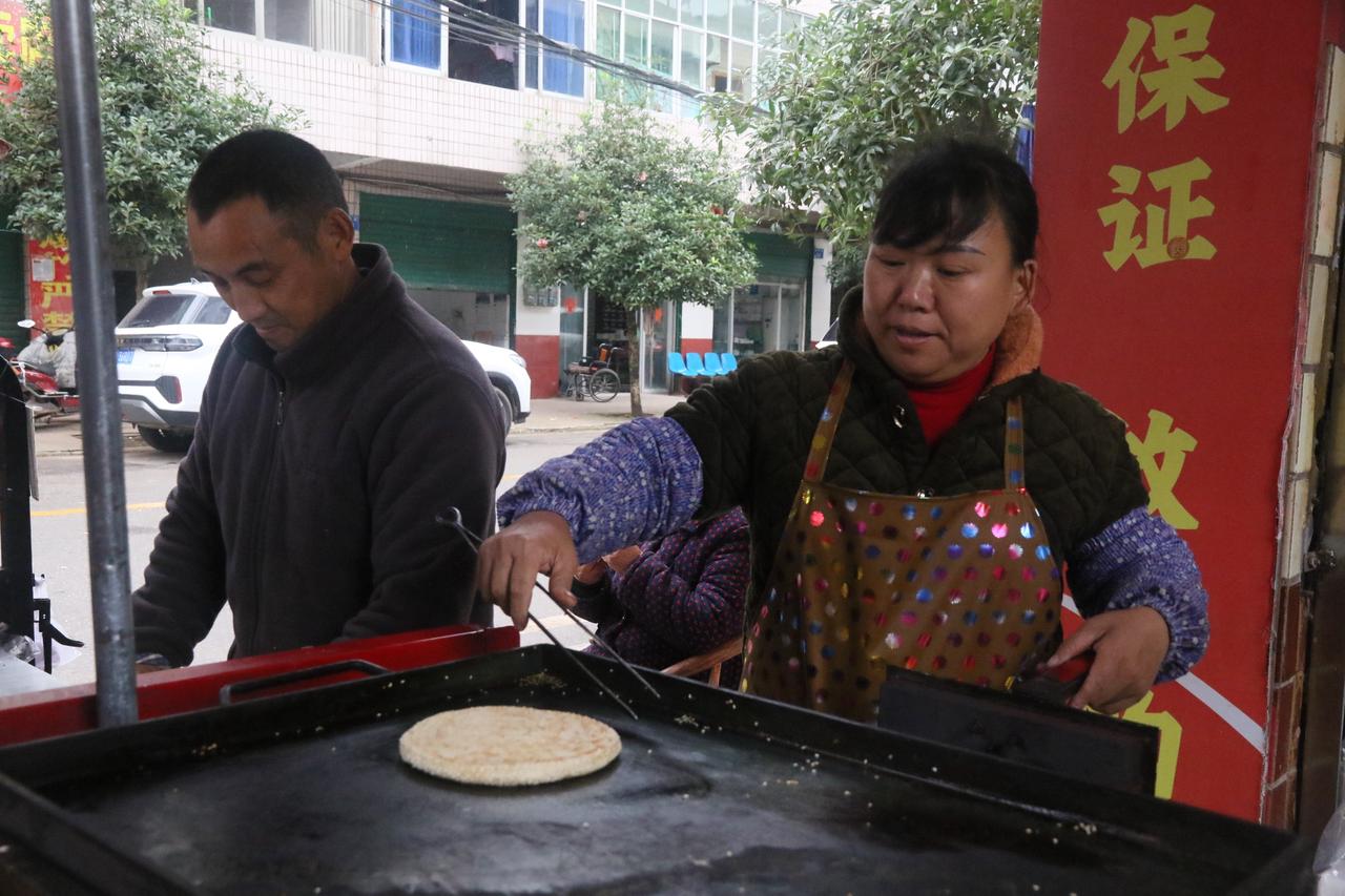 图为卖锅盔的夫妻
