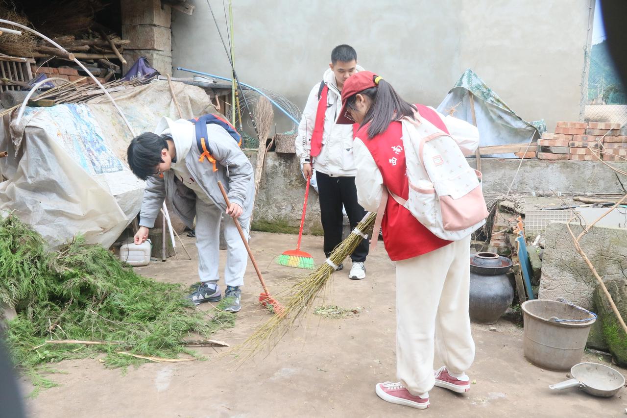 图为志愿者帮助打扫卫生