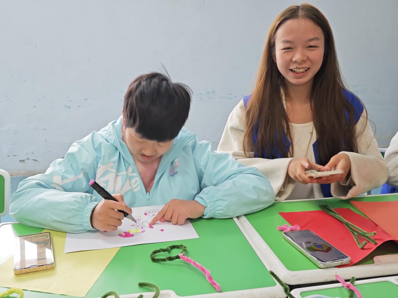 阳光心理协会致力于增进校区学子对自闭症儿童的了解,通过实际行动为这些“星星的孩子们”带来关怀。活动期间,志愿者们与孩子们进行了彩绘、户外唱歌和趣味手工等一系列活动。活动中,志愿者们充分发扬志愿服务精神,表现出极高的热情,耐心地陪伴着孩子们,鼓励孩子们在绘画、歌唱中表达自我、释放天性,孩子们在这一过程中收获了满满的快乐,活动现场和谐而温馨。
