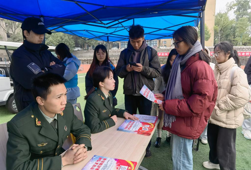 为有效激发大学生的应征入伍热情,12月2日上午,西柚老兵队在学校冬季双选会会场设立了“参军入伍咨询处”,并开展了一系列征兵宣传活动。