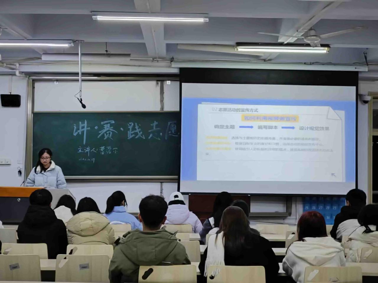 为提升志愿者宣传能力,推动志愿服务事业的发展,近日,校区社团联七彩环保协会在第四教学楼413教室成功举办“志愿宣传培训”活动,本次活动共计31人参与。