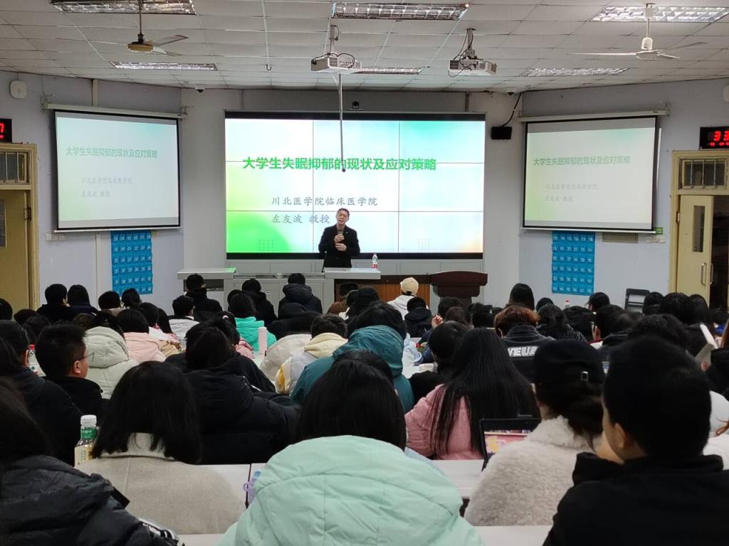 为了增强同学们对心理健康知识的了解和认识,12月5日下午,学生发展部(团委)邀请到川北临床医学院的左友波教授在第四教学楼316教室为同学们科普了“大学生失眠、抑郁现状及应对策略”相关知识。