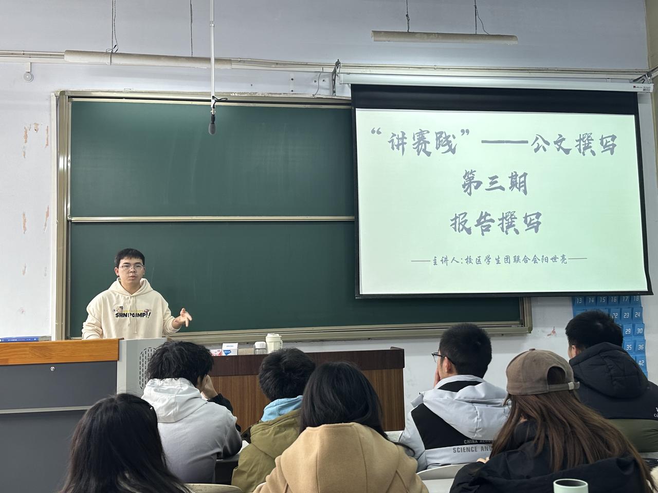 为提升学生的公文写作水平,进一步规范报告撰写格式与内容,近日,校区社团联综合办公室在第四教学楼302教室成功举办了“公文撰写教学第三期”特色活动。本次教学以公文撰写中报告写作为主要培训内容,由综合办公室部长主讲,共计30位学员参与。