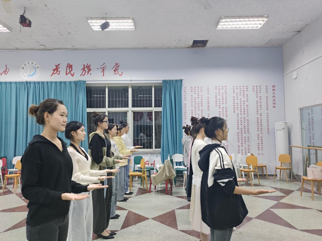 为加强礼仪队队员的出勤素养,团学服务中心礼仪队在大学生活动中心开展了多次日常训练。12月6日晚礼仪队队员们前往大学生活动中心进行训练。