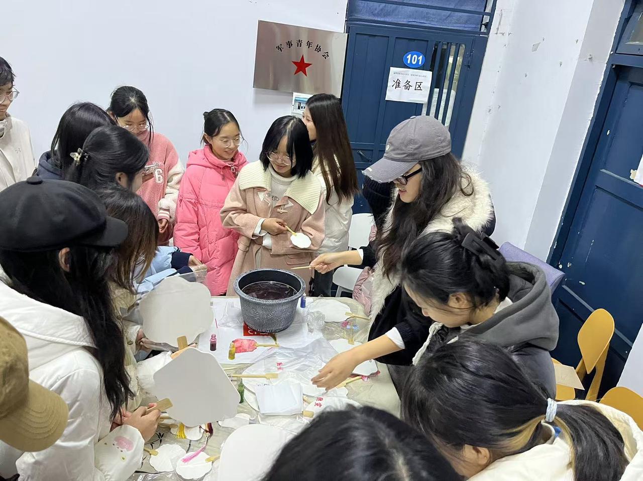 为丰富同学们的校园文化生活,传承和弘扬中华优秀传统文化,机电工程学院于12月5日在大学生活动中心开展了“艺美机电”艺术工作坊非遗文化进校园系列的第一期活动——“一扇一心,同绘新章”漆扇传统文化传承活动。