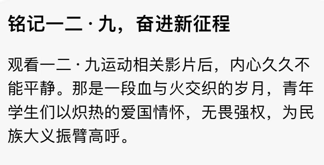 通过本次活动,同学们全面且深刻地了解了“一二·九运动”的史实,深切领悟团结、勇敢等宝贵精神品质,极大增强了对国家和民族的强烈责任感。