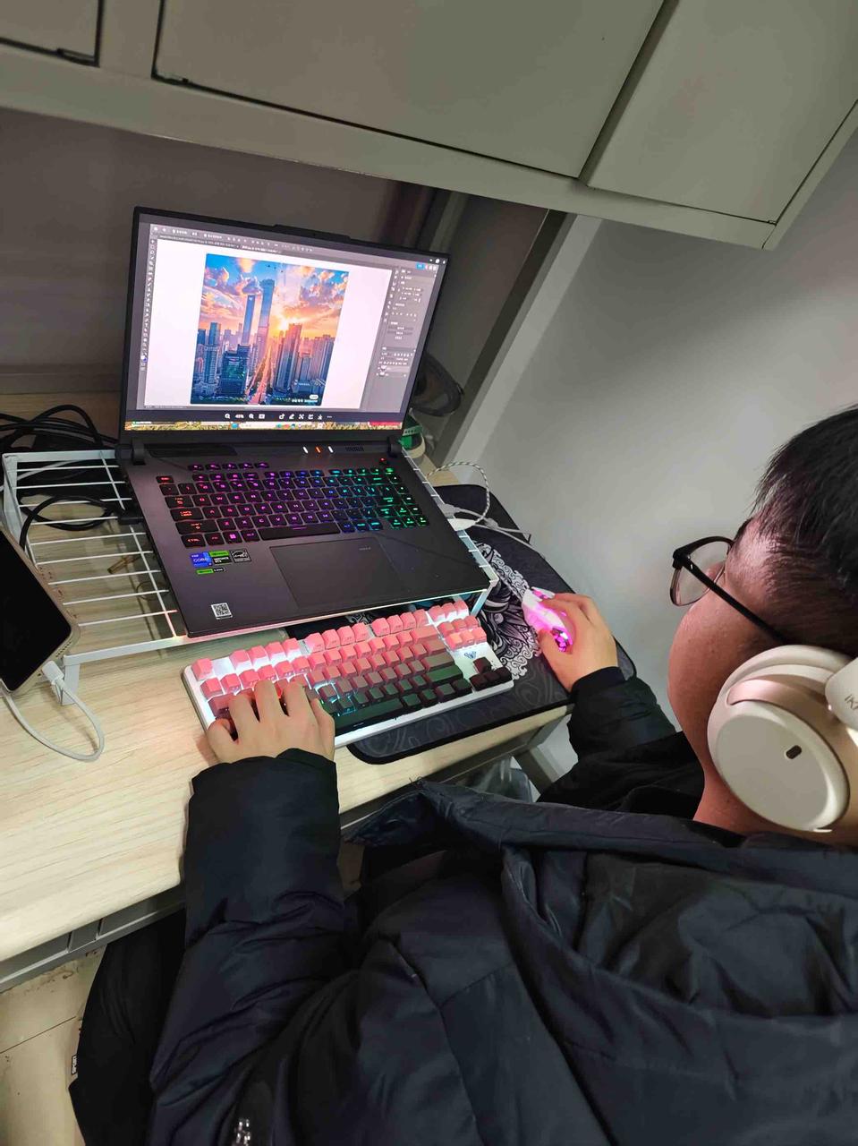教学中,主讲人将自己掌握的技巧与心得倾囊相授,从软件界面认知开始,详细讲解了裁剪、画笔、图层管理等基础工具及其使用技巧,并通过实际案例演示,让模糊抽象的操作变得通俗易懂。同学们在课堂上认真听讲、积极实践,从简单的图像裁剪、调色,逐步进阶到瑕疵修复和元素合成,学习氛围浓厚。