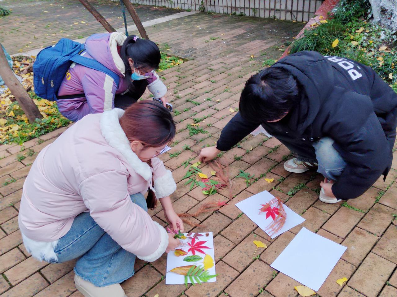 本次活动以自然树叶为媒介,旨在引导同学们通过拾取、创作树叶画,感受自然与艺术的完美结合,同时释放学期末的学习压力,激发学生对未来的美好期盼。活动现场气氛欢快,工作者为同学们准备了多种色彩颜料、剪刀、胶水和画纸等工具,同时提供各种形态各异、色彩斑斓的落叶,为同学们提供了一个自由发挥、表达创意的舞台。