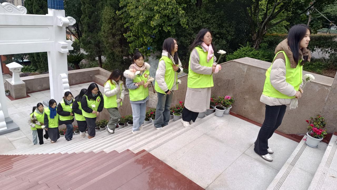 当日下午,同学们整齐列队,怀着崇敬的心情走进南充市烈士陵园,向革命先烈们敬献花束,以此表达怀念与哀思。随后,在讲解员的带领下,同学们参观纪念馆,了解当时的时代背景与烈士英勇事迹,追思先烈们的崇高精神。活动结束后,志愿者表示:“作为新时代的青年,我们要铭记历史,从先辈们身上汲取奋进的力量,担负起时代赋予的使命。”