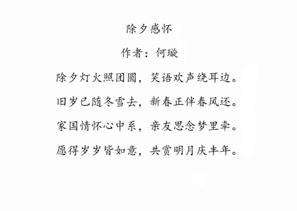 活动期间,同学们利用网络查询典故资料,并结合春节期间的所见所闻进行赋诗填词,抒发内心感慨。据了解,本次活动涌现了不少典故得当、音韵和谐、感情真挚的佳作。最后,经协会指导老师与协会理事的多轮评审后,张滢钰、何璇等同学的作品,凭借文笔细腻、词句工整、情感宏大等优点,成功取得“优秀作品”的评价。