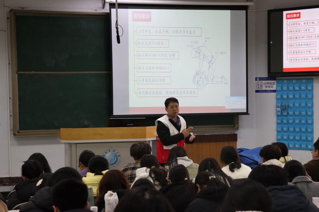 为切实提升学校学生的应急救援素养,提高应急管理的实际工作能力,3月8日,学生发展部(团委)邀请南充市红十字会于第四教学楼4517开展本学期第一期应急救援培训,共75位同学参与。