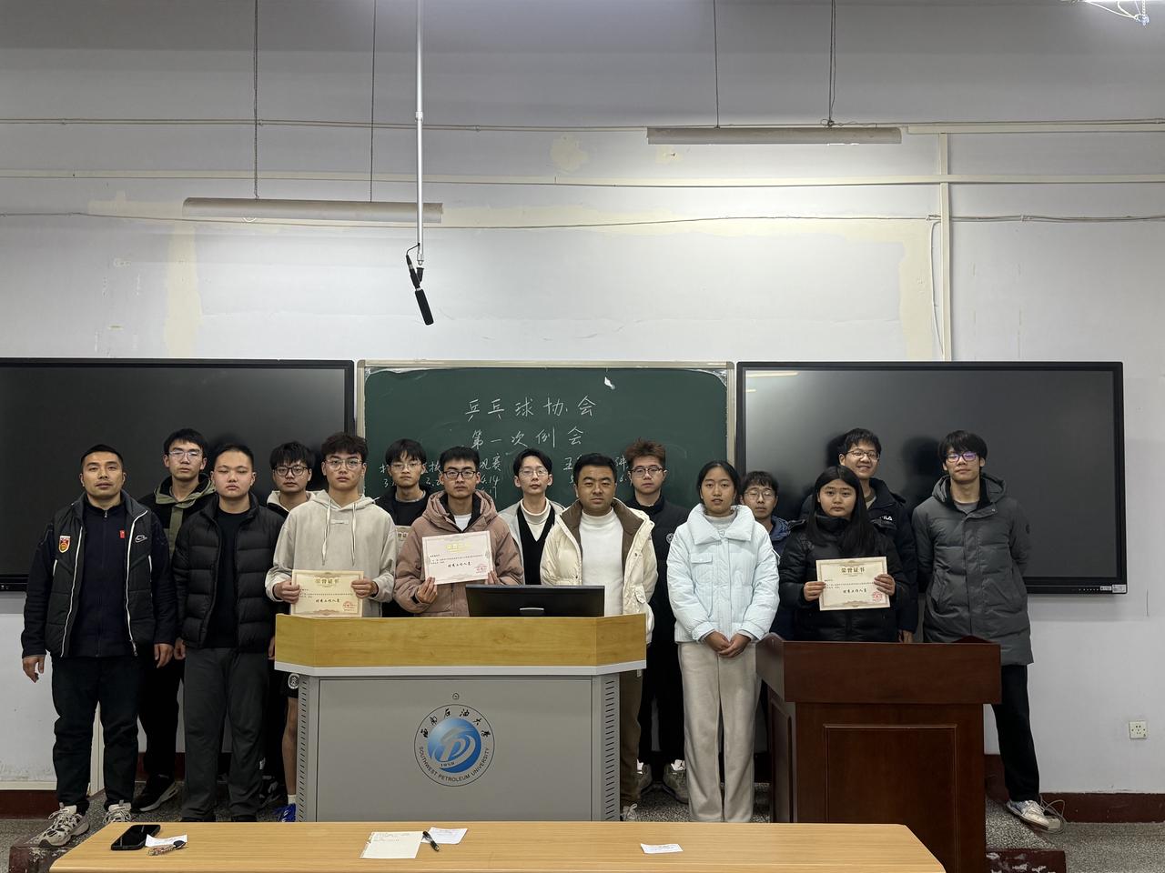 近日,校区社团联乒乓球协会新学期第一次例会在第四教学楼402教室顺利召开。协会指导老师何俊、牟彩伟出席会议,并为协会新学期工作的开展提出指导性意见。