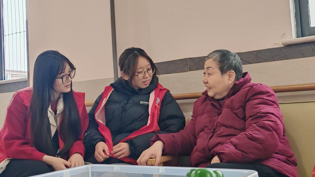 活动现场,志愿者与老人建立“一对一”结对关系,通过倾听讲述、兴趣互动等方式开展个性化陪伴服务。志愿者陪伴热爱音乐的李奶奶即兴演唱经典歌曲,与林奶奶进行益智麻将游戏,在互动中帮助老人进行认知训练。在福利院专业护理员赵英的指导下,志愿者陪同老人参与了包含歌舞表演、武术展示等环节的集体生日会,通过语言交流、手势互动等方式增进情感联结,让老人们感受到了温暖。