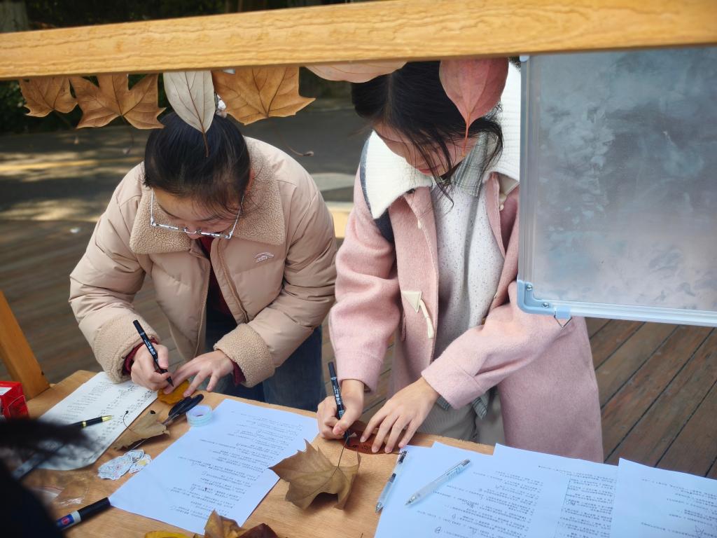活动伊始,一场紧张激烈的春分节气知识竞答迅速点燃现场氛围。题目内容广泛,涵盖天文、习俗、农事等多个领域。同学们在答题过程中,不仅展现出了扎实的知识储备,更流露出对春分节气、对大自然的热爱与敬畏之情。知识竞答环节结束后,同学们纷纷拿出此前在校园、公园等地精心收集的最美树叶,并在树叶上书写春分诗词或个人寄语。一片片树叶,在同学们的笔下成为了传递美好情感的载体,他们借树叶创作,留存下了独属于春分的美好记忆,铭记着在这个节气里的情谊与感悟。