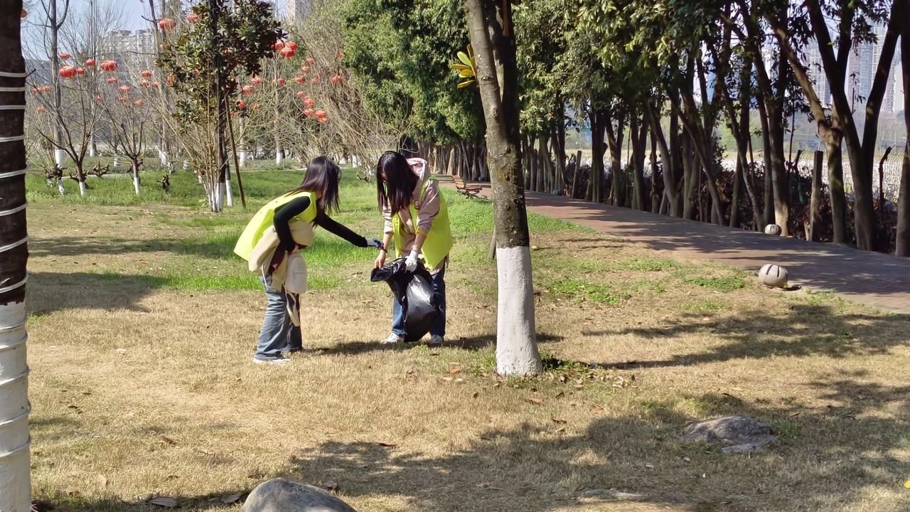 活动当日,志愿者于校门口准时集合,在工作人员的引领下前往印象嘉陵江湿地公园。随后,志愿者们分成若干小组,于公园各地有条不紊地清理河道旁、行道以及草坪内的垃圾,并严格按照标准进行分类。若发现个别游客有不文明行为,志愿者会第一时间上前,礼貌且耐心地进行劝导。清理工作结束后,志愿者集体合影留念,将分类后的垃圾倒入对应的垃圾箱,并把活动工具交还给工作人员。至此,本次志愿活动圆满落下帷幕。
