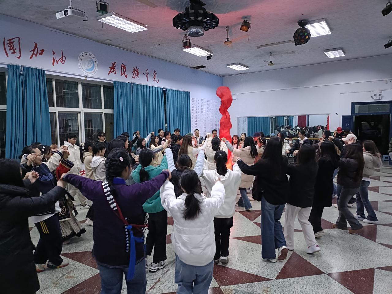 本次活动以“篝火踏歌,共舞民族风华”为主题,让同学们在亲身体验民族舞蹈文化的过程中,感受各民族在其舞蹈艺术中展现出的对生活的热情。活动开始,主持人首先进行开场致词,对参与活动的全体同学表示了热烈的欢迎,随后,民族艺术协会会长启动电子篝火,同时协会成员身着民族服装对参加活动的同学进行舞蹈教学,并带领同学们伴随民族音乐进行自由舞蹈。在活动的最后,协会还进行了民族舞蹈知识问答互动活动,进一步本次舞蹈教学的教学成果。整场教学活动中,协会成员认真教学,参与学员积极学习,现场氛围热烈。