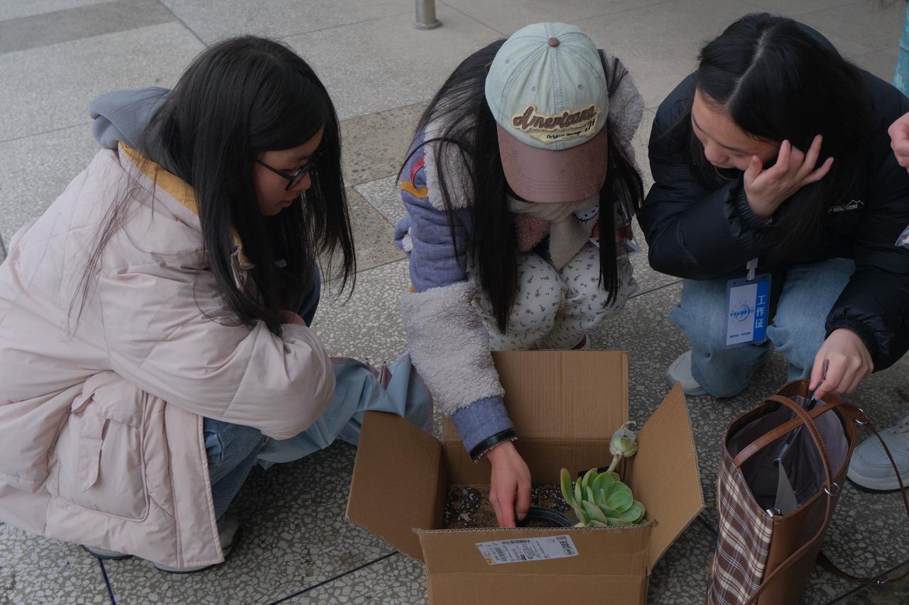 本次活动涵盖书写环保思想、分享环保标语及寻花领多肉盆栽等环节。活动中,同学们从可持续发展的宏观理念出发,或借用名言或独立构思,将自己对于环保的理解和感悟浓缩成一句标语,并将其书写下来,张贴在协会预备的展示板上。除此之外,同学们还积极向周围人分享自己的环保标语,并在交流分享中,深化和丰富自身对于环保的理解。值得一提的是,寻花领盆栽环节反响热烈,活动热度远超预期,活动尚未开始,龙井湖畔、柳堤等藏花地点便已人头攒动,同学们仔细搜寻,不放过任何一个角落。活动开始后,预先准备的10盆多肉盆栽在20分钟内被领取完毕。