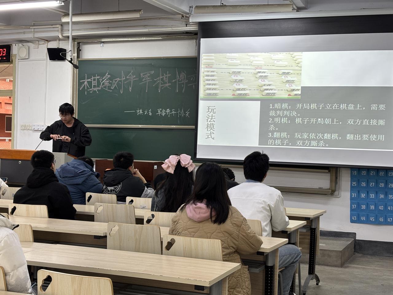 为丰富校园文化生活,培养学生的战略思维和团队协作能力,提升学生的讲赛践炼能力,近日,校区社团联合会军事青年协会与棋云舍联合在第四教学楼212教室成功举办了“棋逢对手,军棋博弈”活动。本次活动吸引了30名学生积极参与。