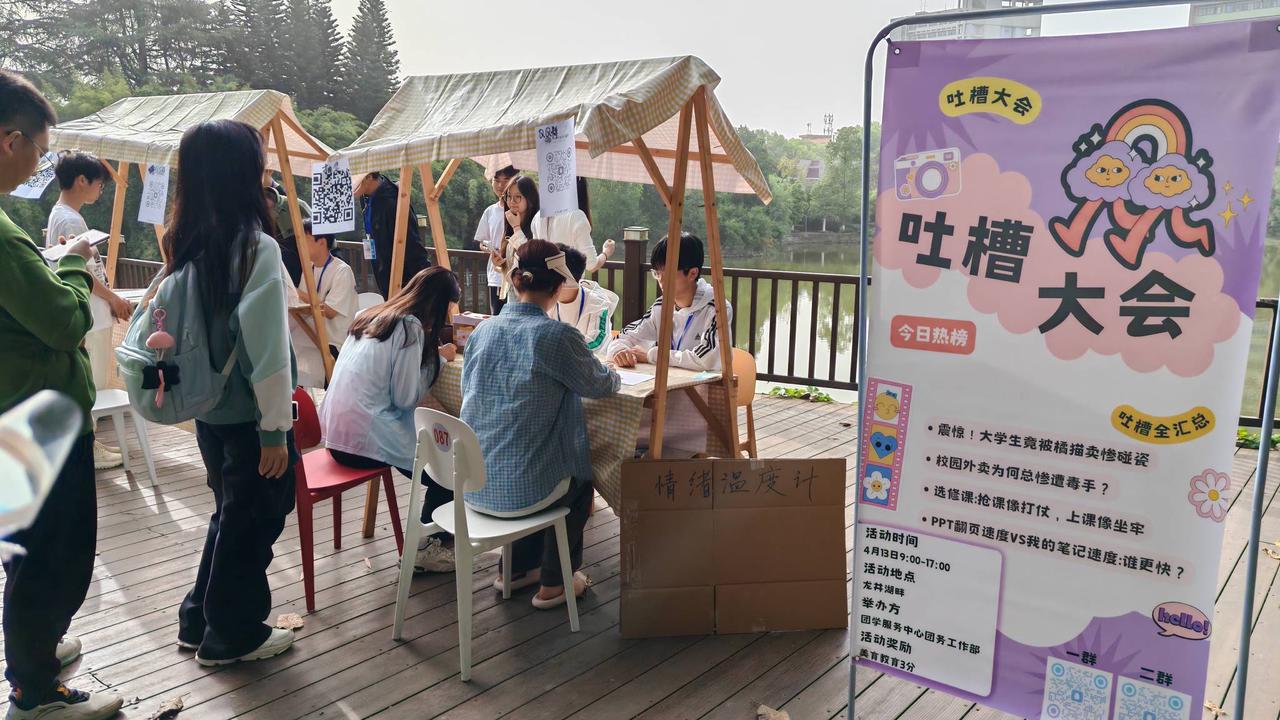为响应校区“讲赛践炼”的教育方针,缓解同学们在学习与生活上的压力,让青年学子们有机会表达自己的观点与情感。4月13日,校区团学服务中心团务工作部于龙井湖畔开展吐槽大会,为同学们提供了一个轻松愉悦的交流平台。
