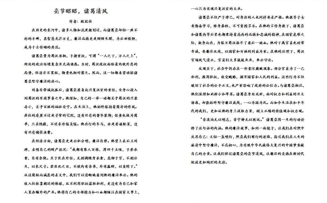 同学撰写廉洁故事