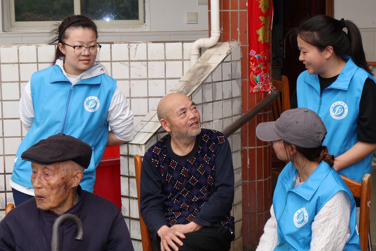 志愿者们与老人交谈