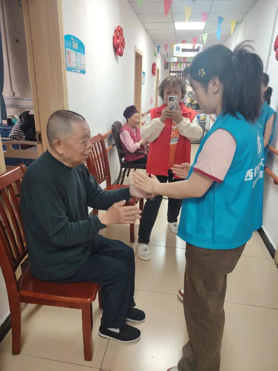 为深入践行“讲赛践炼”育人理念,弘扬尊老敬老的传统美德,给老年群体送去更多的关怀与温暖,近日,校区青年志愿者协会于南充市顺庆区西城街道府苑社区综合为老服务中心开展以“以爱为光,映刻桑榆”为主题的敬老志愿活动。