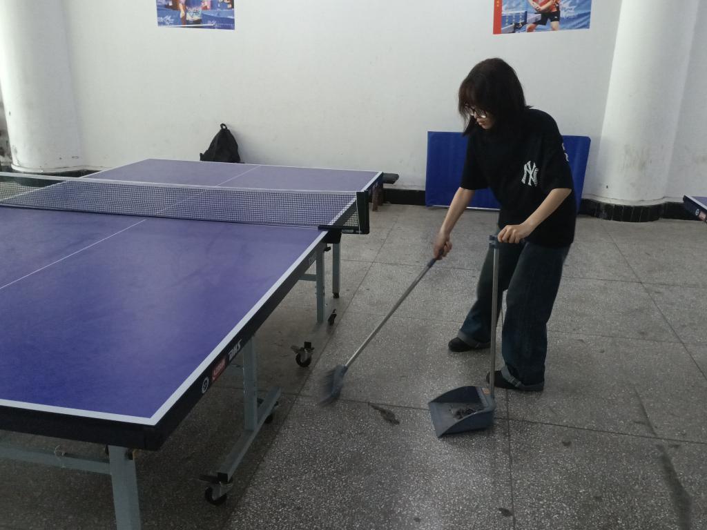 作为五高校联赛前的重要筹备环节,本次活动分为环境整治与设施维护两大主要工作任务。在协会会长的统筹安排下,志愿者们分工明确、井然有序地开展了清理工作,擦拭球桌、擦净窗户、专注扫地、整理器材室、摆正球网,经过志愿者们数小时的辛苦劳作,整个乒乓球室焕然一新。整个清扫活动中,同学们表现出团结协作、吃苦耐劳的优良精神作风,充分展现了南充校区学子们的良好精神风貌。
