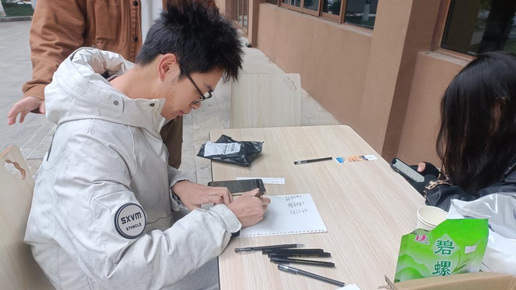 本次活动分为两个板块。在茉莉奶绿制作环节,专业人员详细讲解了传统茶饮制作工艺,从茶叶的挑选、浸泡,到与牛奶的融合,每一步都饱含着茶文化的韵味。同学们认真聆听,在品尝茶饮的过程中深入感受茶文化的独特魅力。与此同时,书写诗句的活动也开展得如火如荼,同学们在一笔一划间感受古人对时节和茶的细腻情感。大家在书写中领略传统文化的博大精深,实现与古人跨越时空的对话。