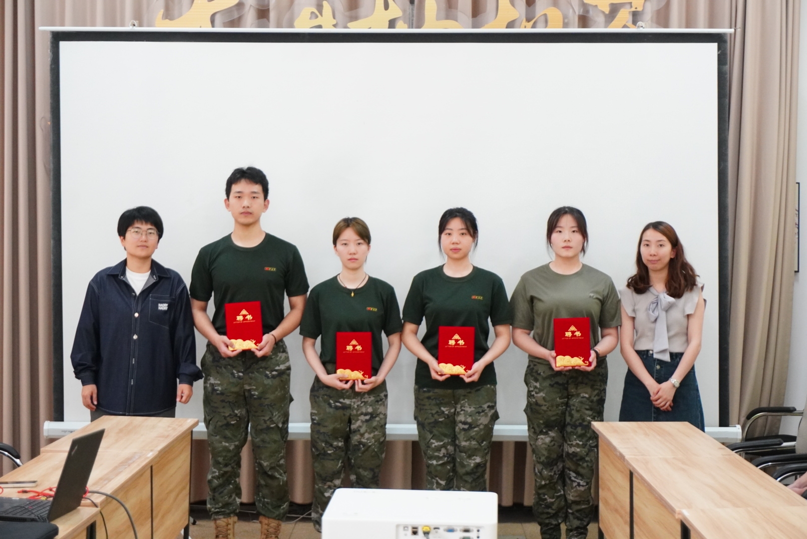 5月13日,西柚老兵队于外语村成功举办第二届换届仪式,学生教育管理中心主任周欣欣、学生教育管理中心干事刘纯及全体西柚老兵队队员参与。
