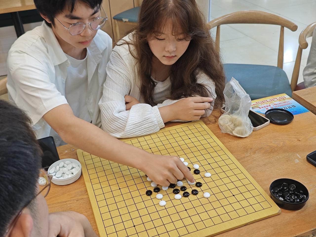 赛事严格采用单败淘汰制,选手需通过连续对决晋级。比赛现场,参赛选手两两组合交替落子,在19路棋盘上展开智慧交锋。对阵双方时而沉思计算棋路,时而果断落子构筑防线,黑白棋子间攻防转换扣人心弦。多组选手在胶着局势中沉着应对,通过调整策略突破困局,数次上演绝地反击的精彩场面。裁判组全程严格执裁、尽职尽责确保每场比赛的公平性,志愿者们有序完成计时、计分等工作,保障了赛事的顺利推进。比赛全程,选手们秉承“友谊第一,比赛第二”的竞技精神,并在赛后主动与对手开展复盘,展现出新时代青年专注进取、团结协作的精神品格。