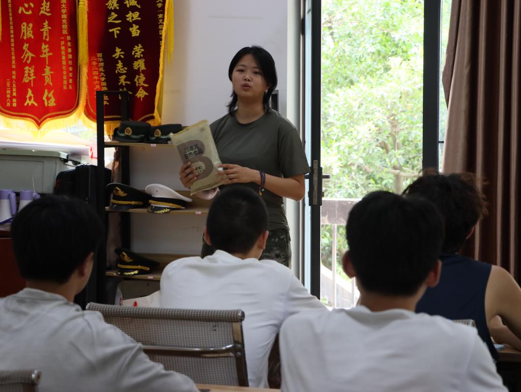 “单兵自热食品专为我军士兵在野战环境无明火条件下设计,是保障士兵餐食需求的重要战备物资。”西柚老兵队队员杨欣岢一边进行规范的操作示范,一边讲解加热流程中的注意事项。在其耐心指导下,同学们纷纷动手实践,亲自体验单兵自热食品的加热过程,现场互动频繁,气氛热烈。