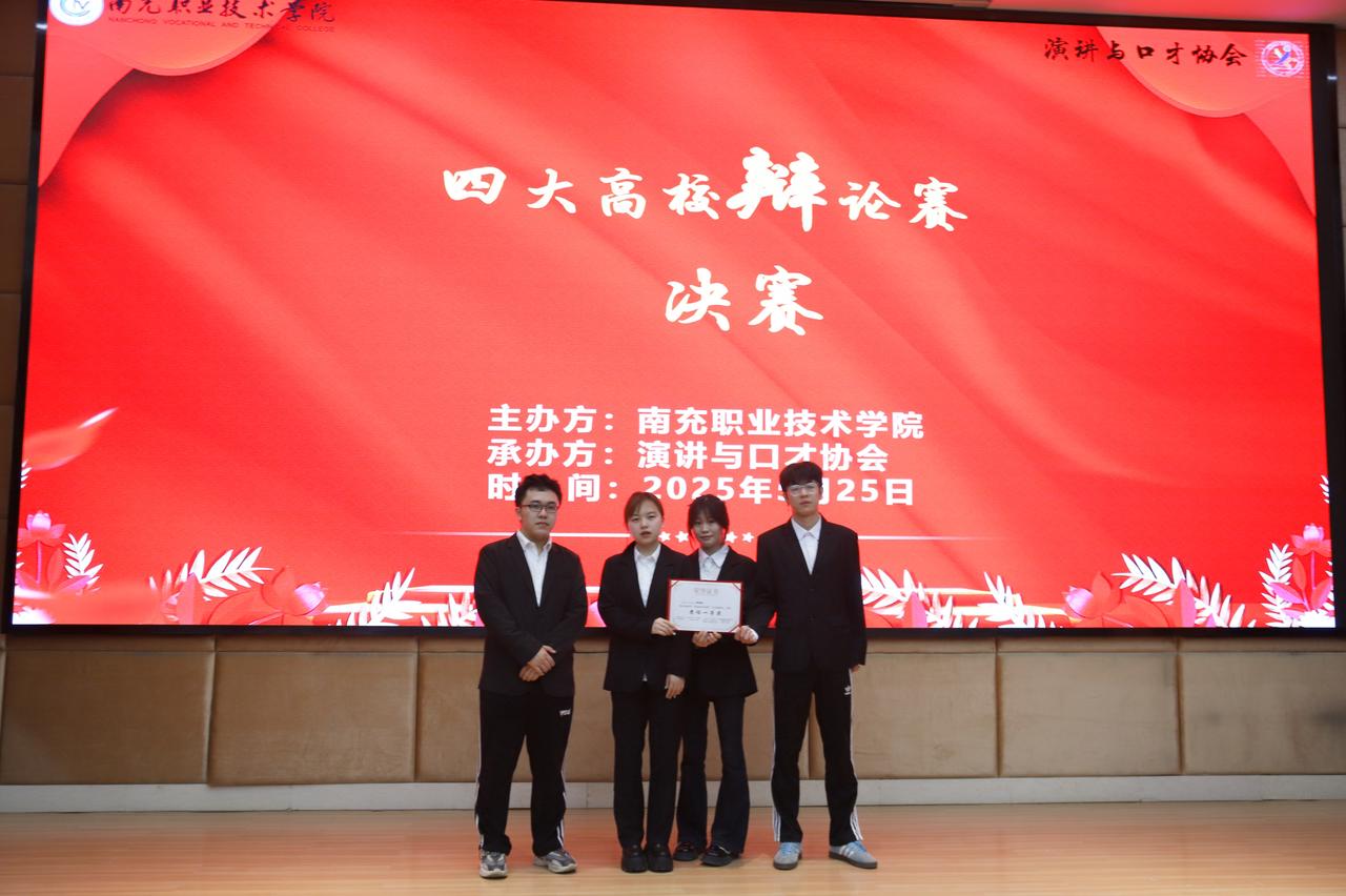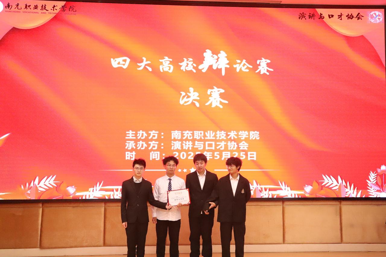 近日,南充校区与西华师范大学、川北医学院、南充职业技术学院三所高校联合开展第四届“四高校辩论赛”,校区社团联思辩协会组织选拔两支队伍代表校区参赛,两支队伍分别荣获团体赛一、二等奖。