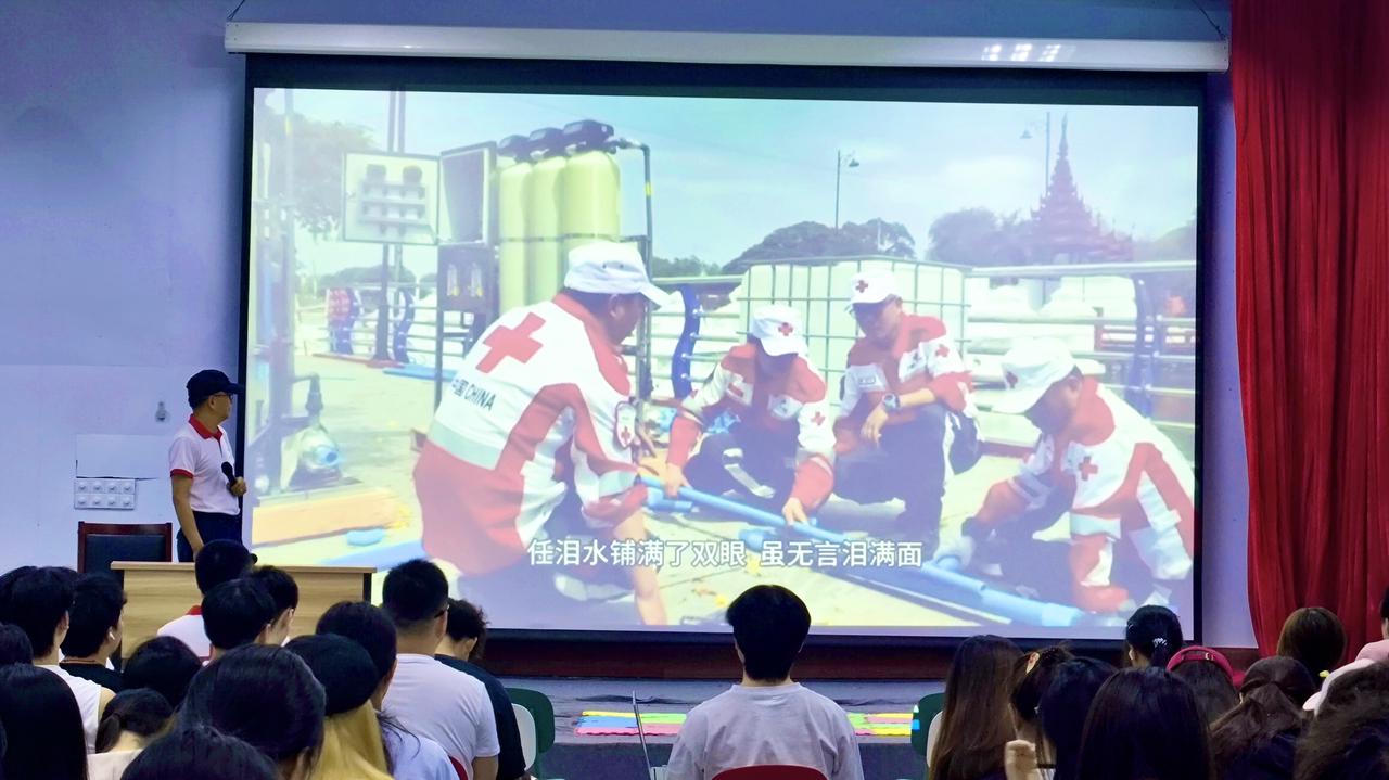 为纪念第78个世界红十字日,弘扬“人道、博爱、奉献”的红十字精神,鼓励更多青年学子投身公益事业,普及急救与献血知识,6月5日下午,“红十字‘救’在身边”宣讲活动在校区大学生活动中心隆重举行。市红十字会党组成员、监事长朱金洪出席活动并致辞。此次活动共计110位师生参与。