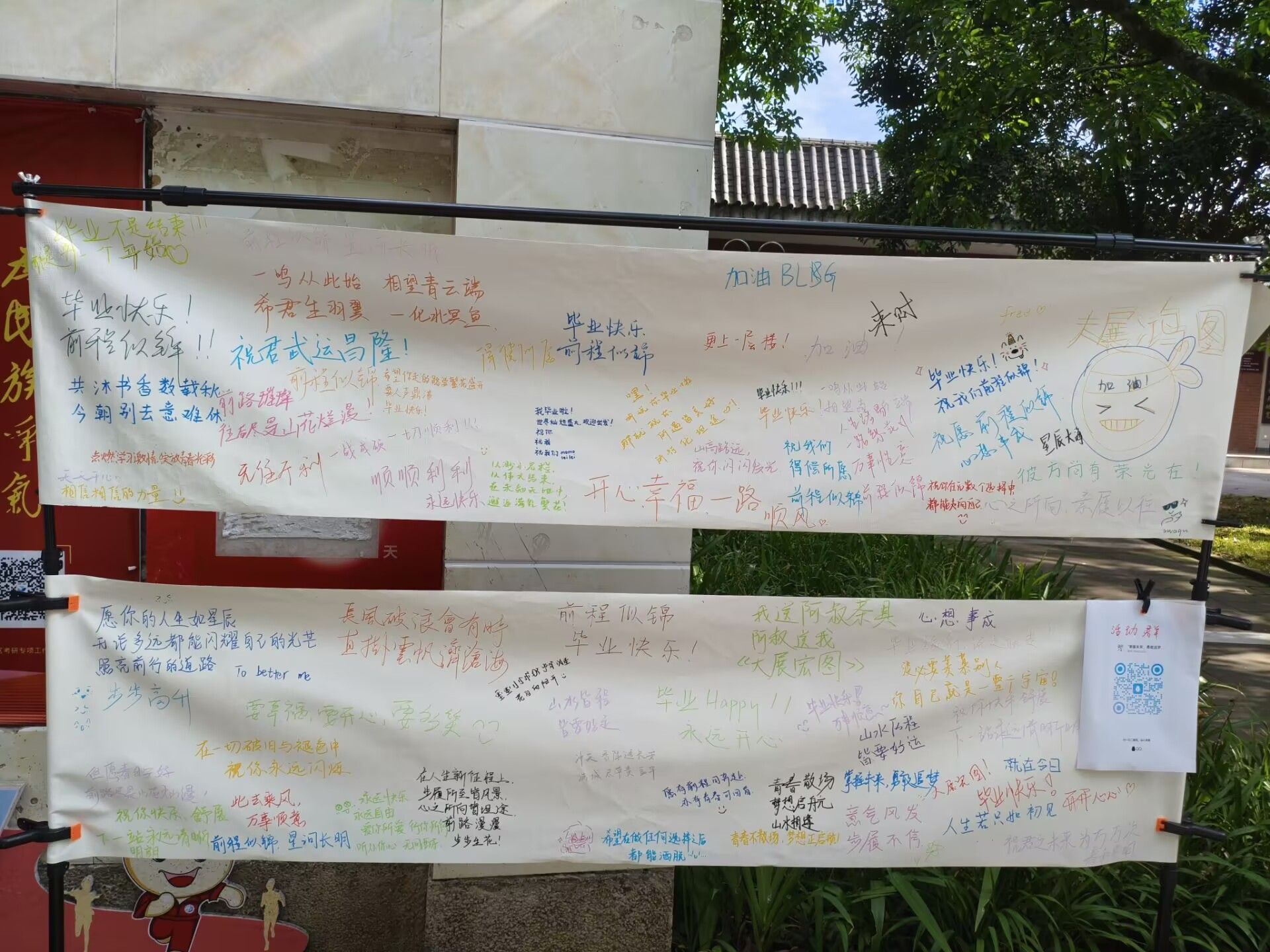 本次活动不仅为毕业生提供了情感表达平台,也展现出了在校学生们对毕业生的关心。同学们充分表达了对毕业生的鼓励与期待,为毕业生带来心灵慰藉。在离校之际,这些语言与画作承载着学弟学妹的真诚祝愿,缓解毕业生对未来的焦虑,增强他们对母校的归属感。