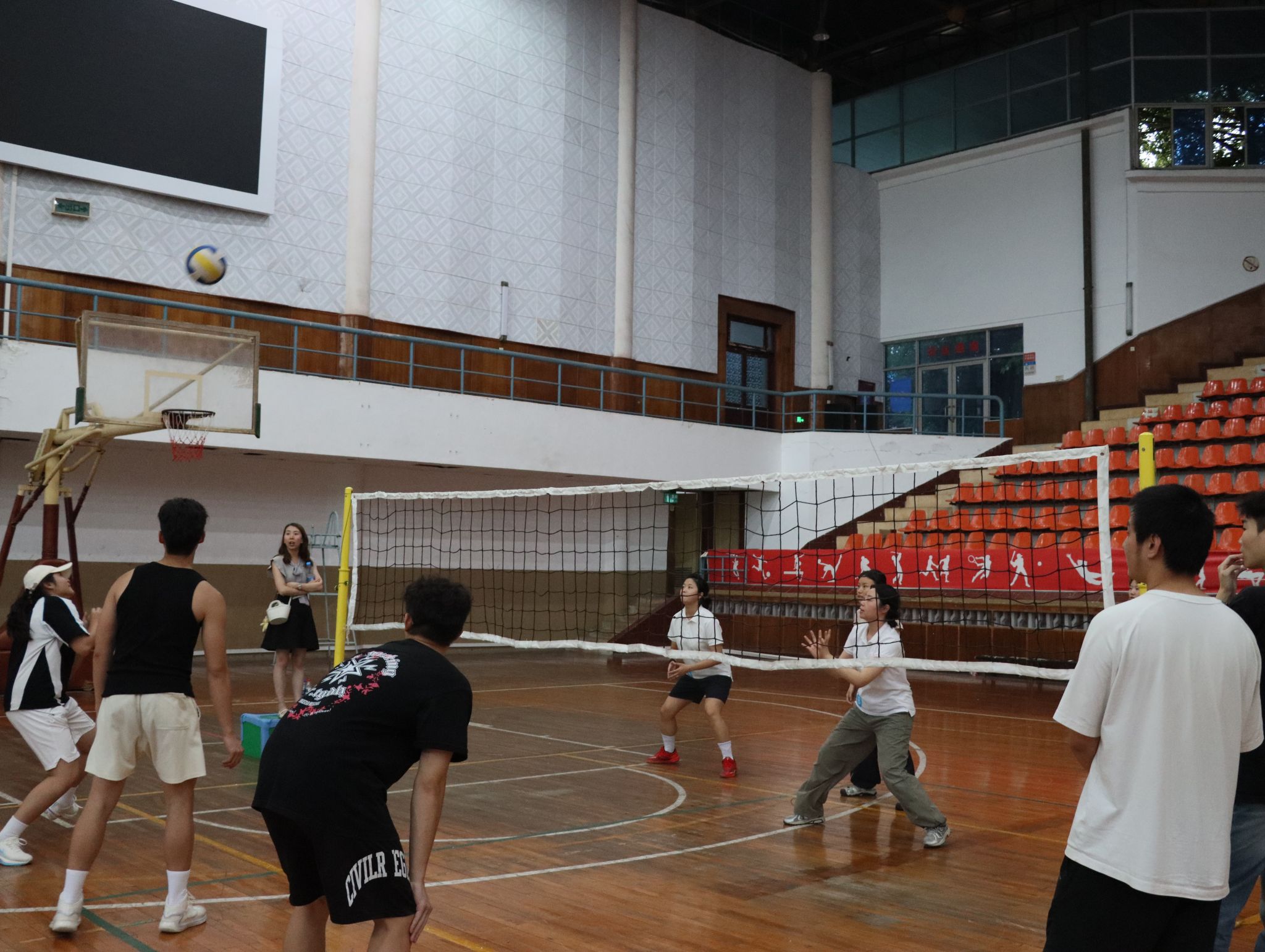 首先,主持人向参赛人员详细介绍了赛程规则,并组织现场抽签分组。随后,比赛正式拉开帷幕。赛场上,队员们配合默契,传球、扣球、拦网等动作行云流水,展现出青春活力。经过多轮激烈角逐,比赛名次依次决出。最后,在主持人“愿大家保持对运动的热爱,传承团结向上的精神”的倡议中,活动圆满落幕。