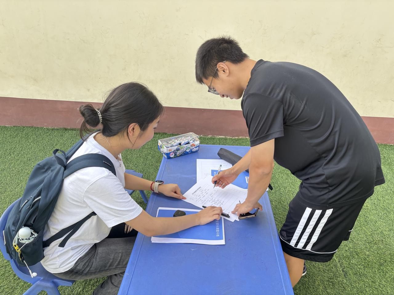 实践队为同学介绍并让其填食品问卷表