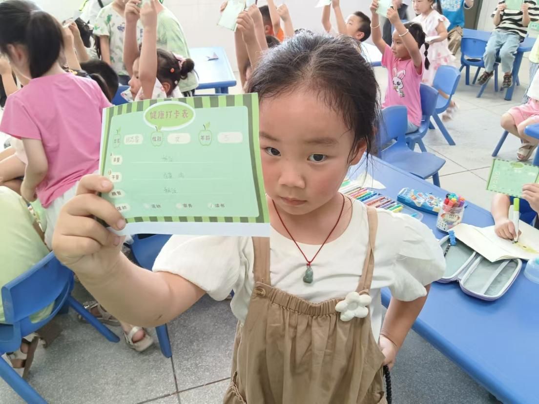 小朋友展示营养打卡表
