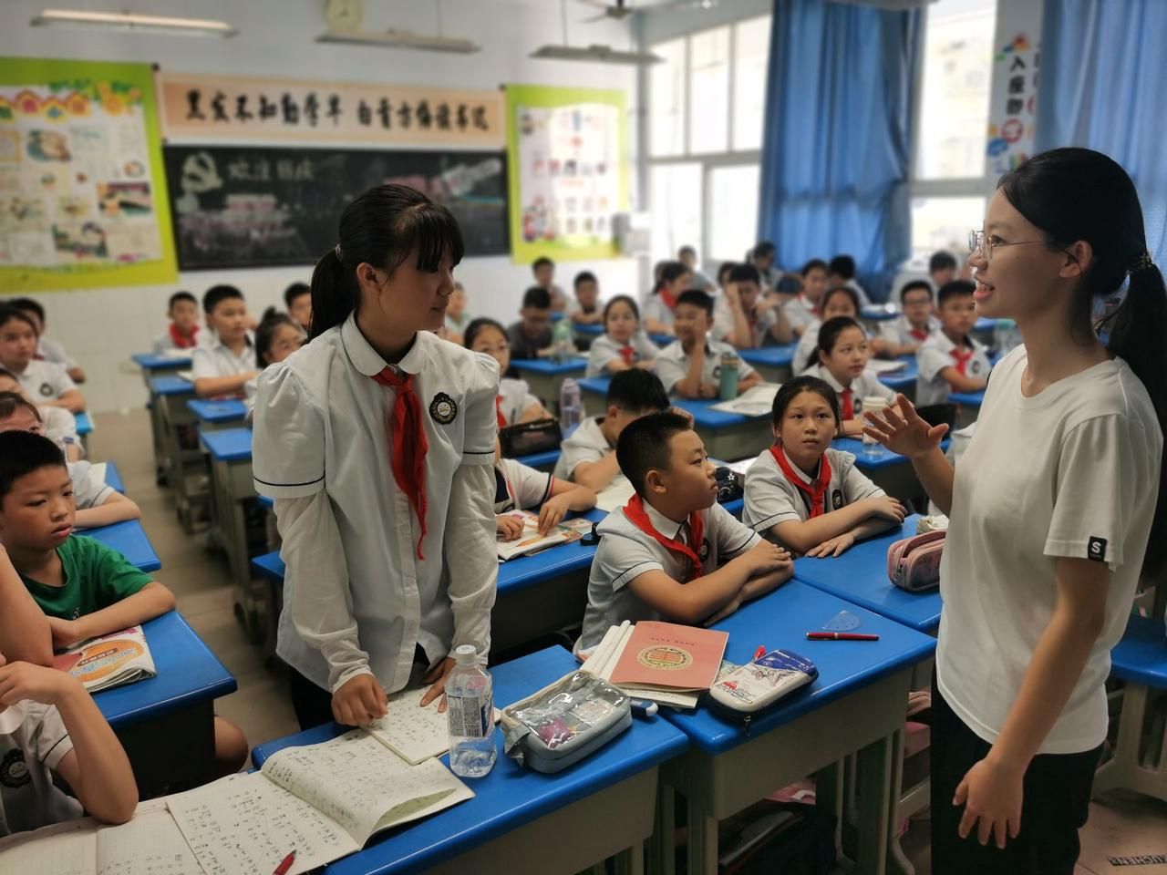学生在向队员提问