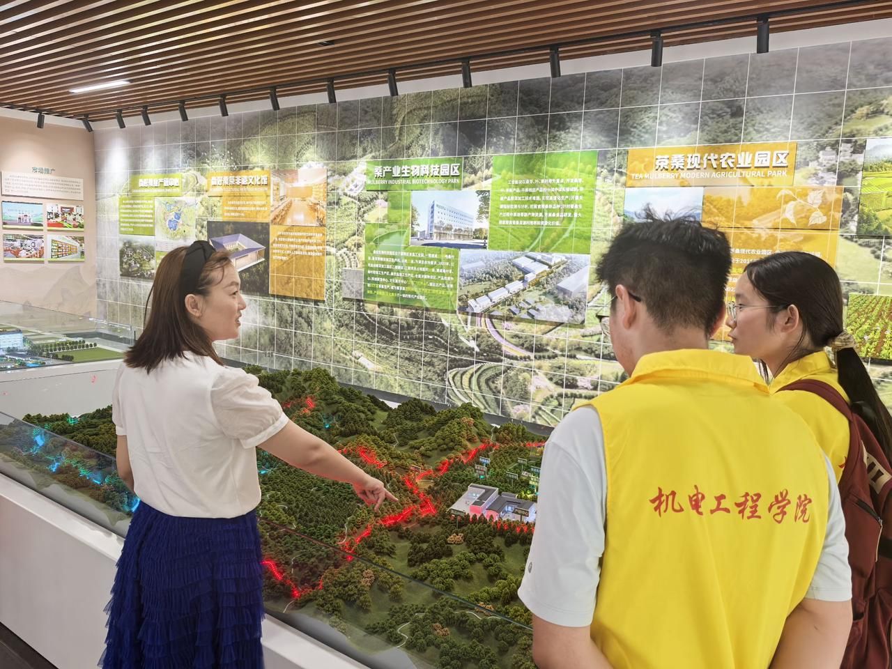 在品鉴区,服务队观察现代桑茶、桑葚汁等20余款产品。农创负责人现场冲泡桑茶:“冷萃技术锁住青香,年轻群体销量年增60%”。队员们对比古法晒制与无菌灌装工艺,就“包装设计”“电商营销”等话题展开讨论。