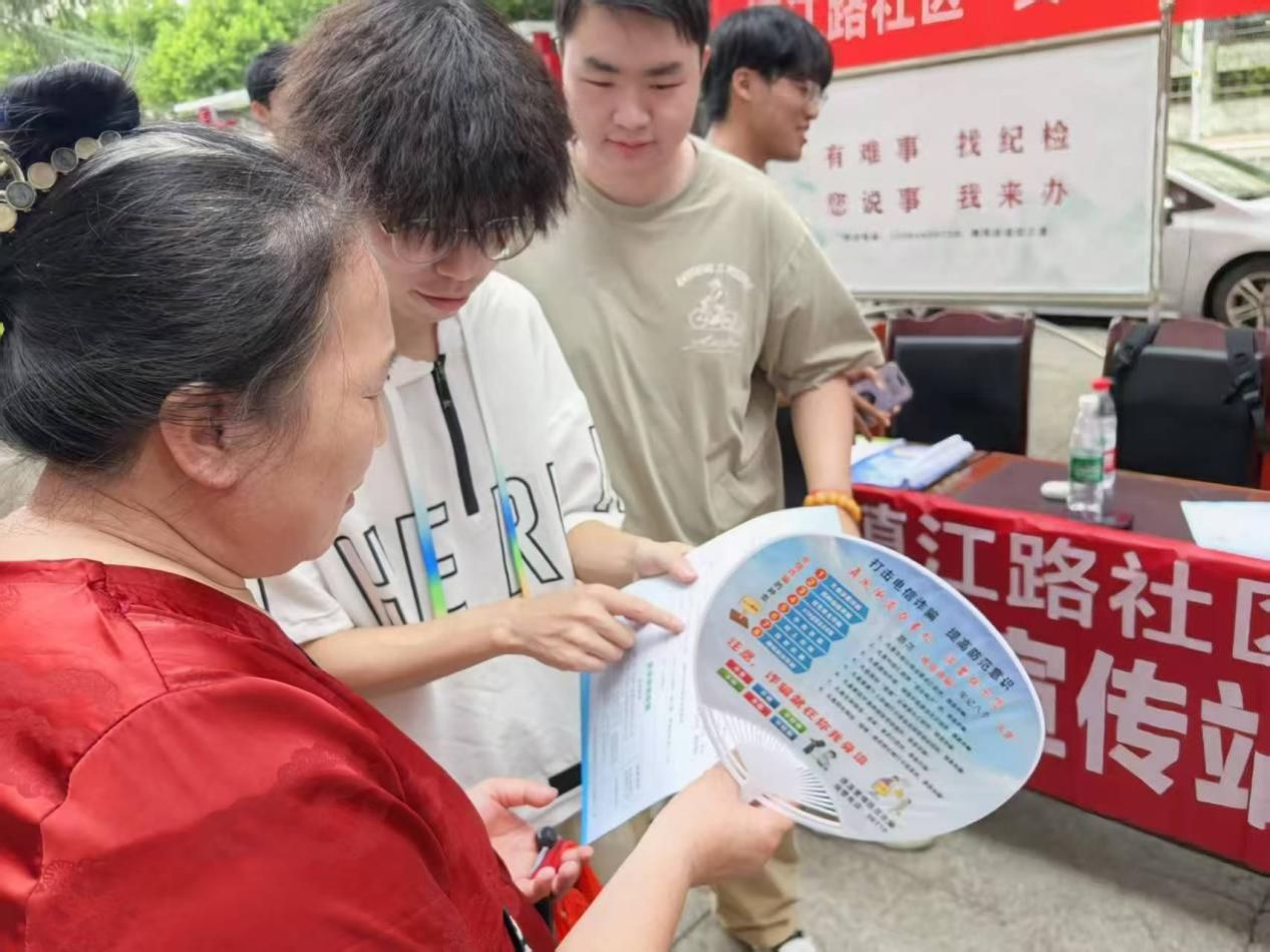 反诈宣传进社区,志愿者们通过发放宣传手册、现场讲解典型案例等方式,向居民尤其是老年人普及刷单诈骗、养老集资骗局等常见手法,并指导居民下载“国家反诈中心”APP;为更好落实城乡居民养老保险政策,社区工作人员通过入户走访、设立咨询台等形式,开展养老保险参保情况问卷调查,并针对居民关心的缴费档次、待遇领取等问题进行一对一解答;向居民宣传舞凤卫生院的医护人员为镇江路社区65岁以上老年人以及30岁以上患糖尿病、高血压等的居民提供免费体检服务;此外,志愿者们手持铲刀,对居民楼楼道的非法小广告进行集中清理。