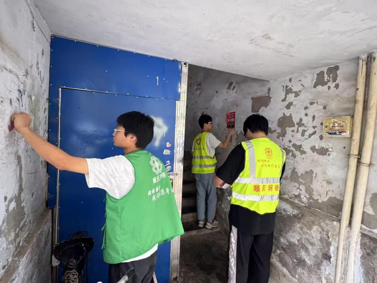 实践队打扫居民楼小广告