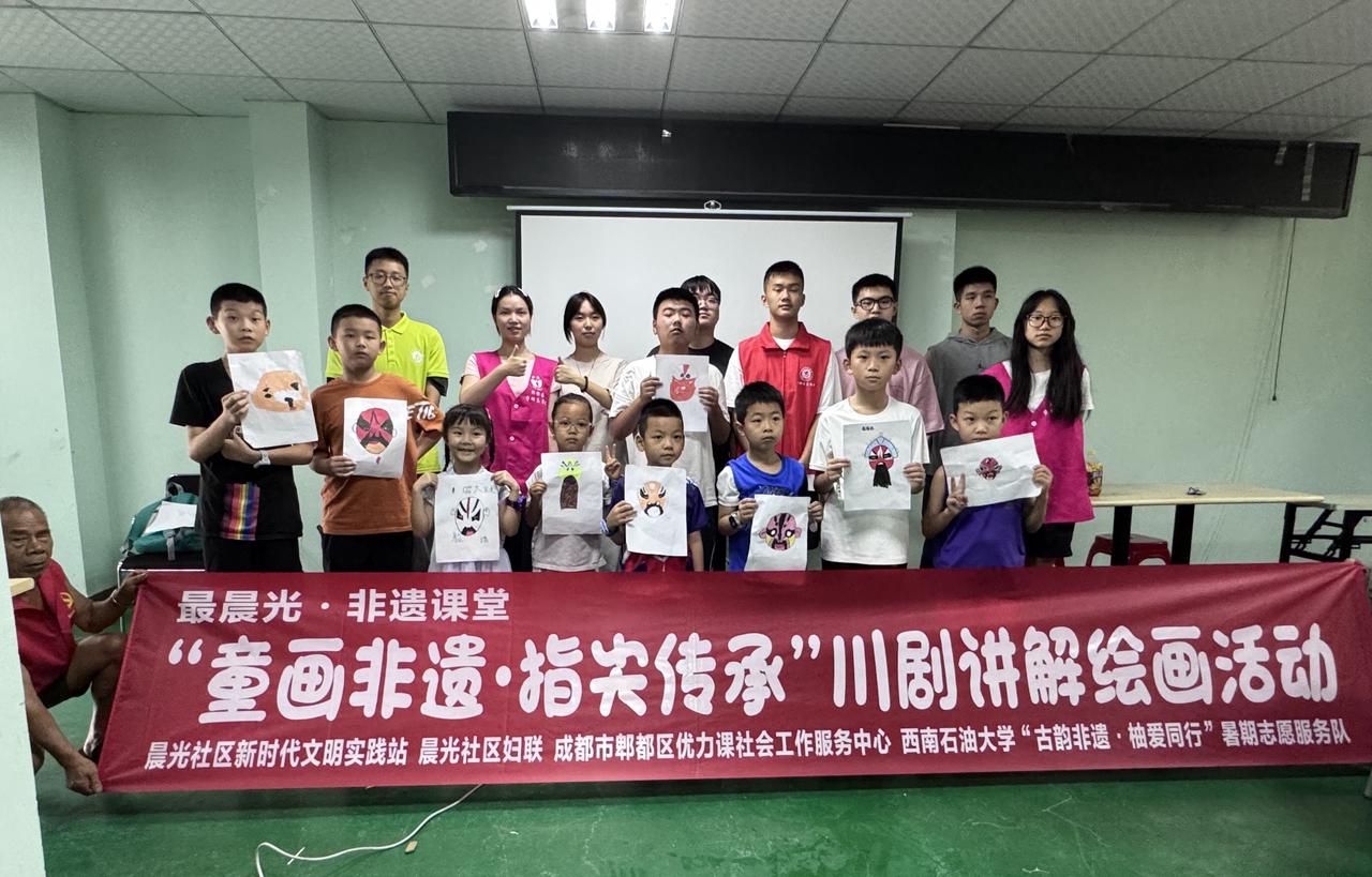 为带领社区居民尤其是青少年群体,近距离感受川剧独特魅力,开启非遗文化探索之旅。近日,西南石油大学古韵非遗“柚”爱同行暑期志愿服务队走进郫筒街道晨光社区,在社区活动中心开展以川剧文化为主题的志愿服务活动旨在带领社区居民尤其是青少年群体,近距离感受川剧独特魅力,开启非遗文化探索之旅。