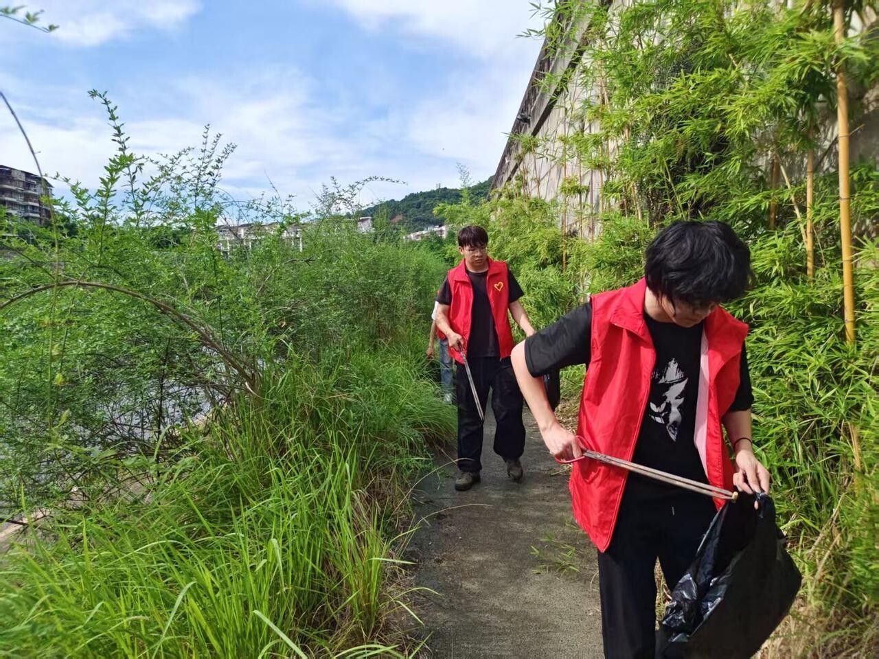 几天后,我们的社会实践转向了社区河道的垃圾清理工作。天气炎热,河道边的沙砾在阳光的照射下呈现出金黄色,一弯下腰,热气直冲面门。我们手持夹子和垃圾袋,沿着河岸一路清理。塑料瓶、食品包装袋、甚至还有旧鞋子和破损的玩具,这些被随手丢弃的物品在河道中找到了它们不该有的归宿。弯腰捡拾的机械动作让我有时间思考:这些垃圾何尝不是另一种形式的"孤独"?被人使用后便被抛弃,在无人问津的角落慢慢腐朽。