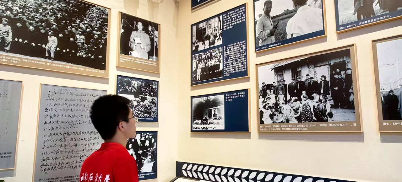 馆内光线柔和,时间在这里似乎变得粘稠而缓慢。迎面而来的是将军身着军装的雕像,背景雕刻着万里长城的灰白色壁面,古朴而厚重。仿佛在诉说一段厚重的历史与传承。他剑眉星目,眼神清澈而坚定,那是属于二十世纪三十年代青年的特有神情——没有迷茫,没有彷徨,只有一往无前的决绝。站在展柜前,我的指尖不自觉地触碰冰凉的玻璃,恍惚间竟觉得能感受到那个年代的温度。将军的皮箱、钢笔、笔记本静静地躺在透明展柜里,每一道磨损的痕迹,每一条缝补的针线都在诉说着一个热血青年的故事。 第一展厅里,迎面而来一件打着补丁的灰色中山装静静沉睡着,旁边的说明牌写着:"罗瑞卿同志常穿衣物,使用多年。我的目光停留在那些细密的针脚上“新三年,旧三年,缝缝补补又三年”在这个快时尚消费的时代,这件衣服像一面镜子,照出了我们这个物质丰裕时代的精神褶皱。当我站在那些泛黄的照片前,凝视罗瑞卿年轻时坚毅的眼神;当我俯身细看他曾经使用过的朴素物品,触摸复制的历史文件,一种奇妙的感觉油然而生——历史不再是遥不可及的过去,而是可以通过这些实物连接的生命体验。尤其令我动容的是展柜里那本1952年的工作笔记,纸张已经泛黄,但字迹依然清晰——每一页都写得密密麻麻,连页边空白处都挤满了批注。